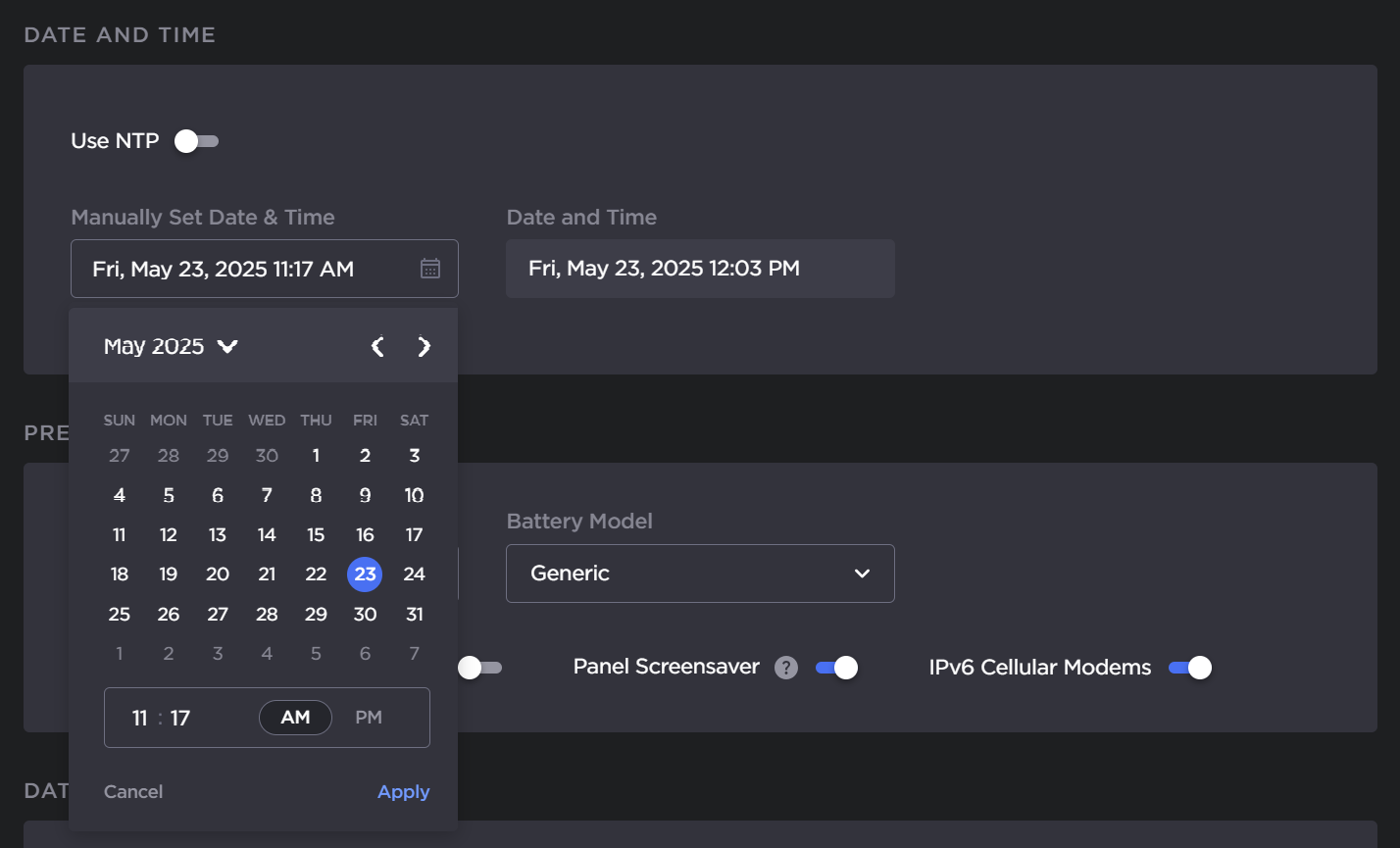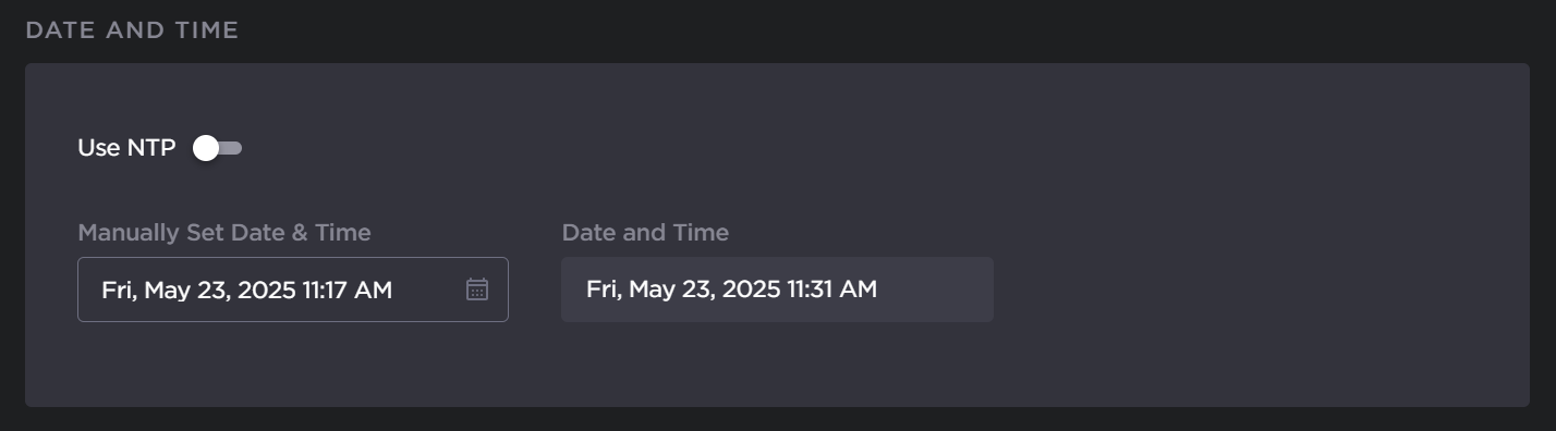 Ensure the Use NTP toggle is disabled.