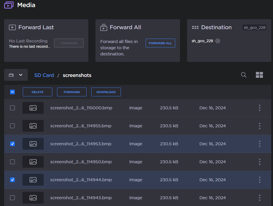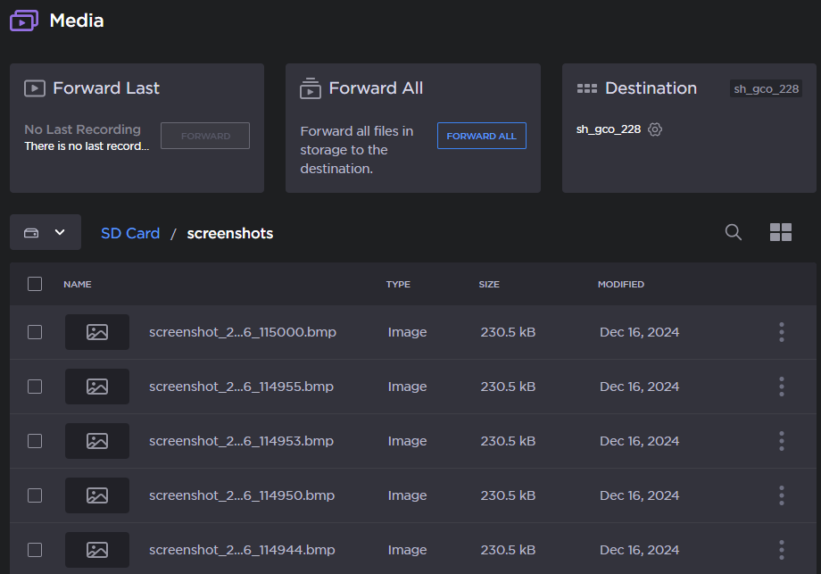 In the sidebar, click Media. The SD card files appear: