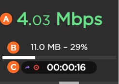 Network Bitrate Record Duration Amount and percentage of data already forwarded (if option enabled)