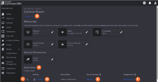 After selecting a Room, you can add, edit, or delete Activities.