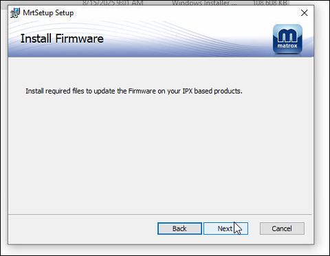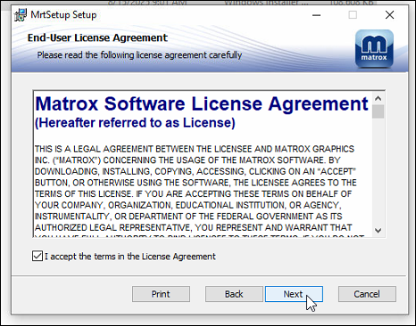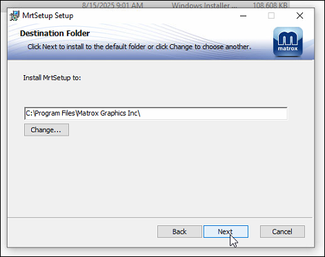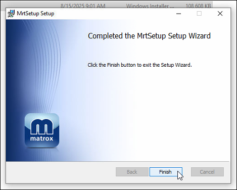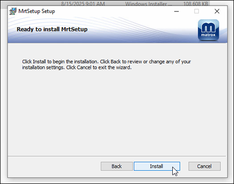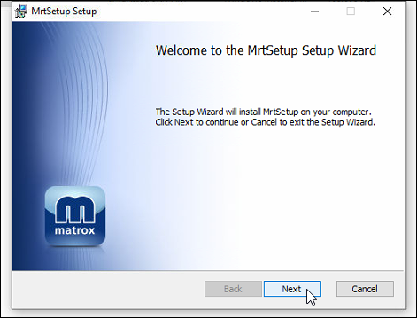 After the new driver package is downloaded, unzip it and run MRTSetup using all default options: