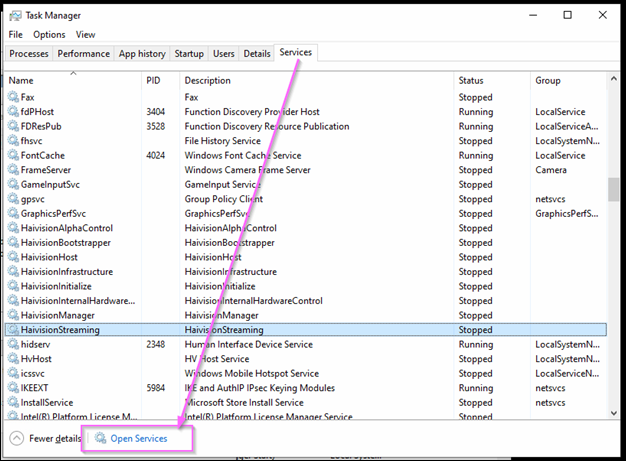 Click Open Services.