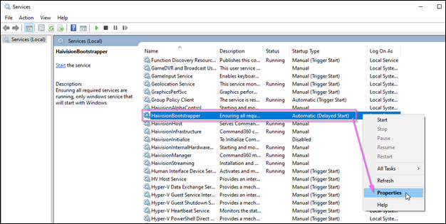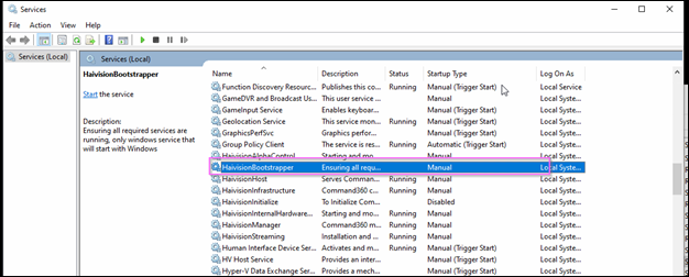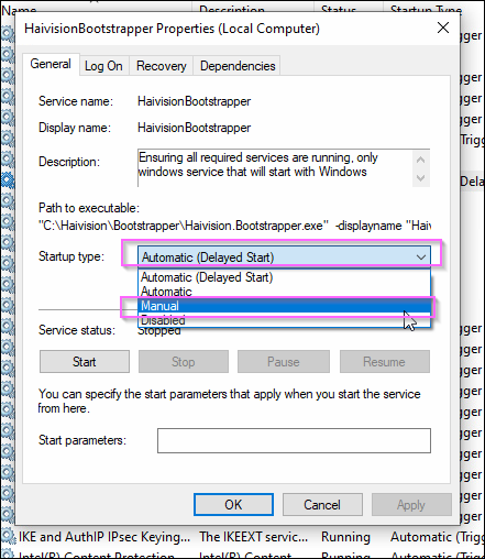 HaivisionBootstrapper must be set to start manually so it will prevent services from restarting after a reboot.