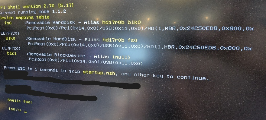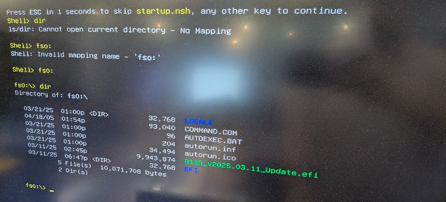 If other file systems are connected, the USB flash drive may be fs1: or fs2: