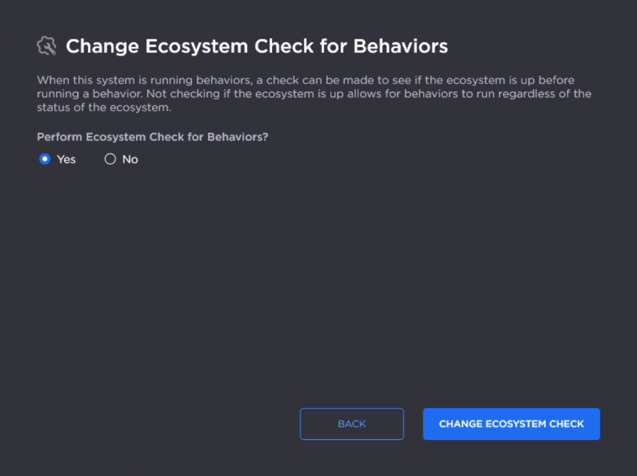 Under "Perform Ecosystem Check for Behaviors?" select Yes.