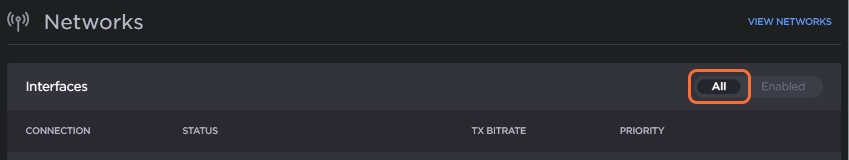 If the Wi-Fi interface does not appear, ensure the All filter is selected: