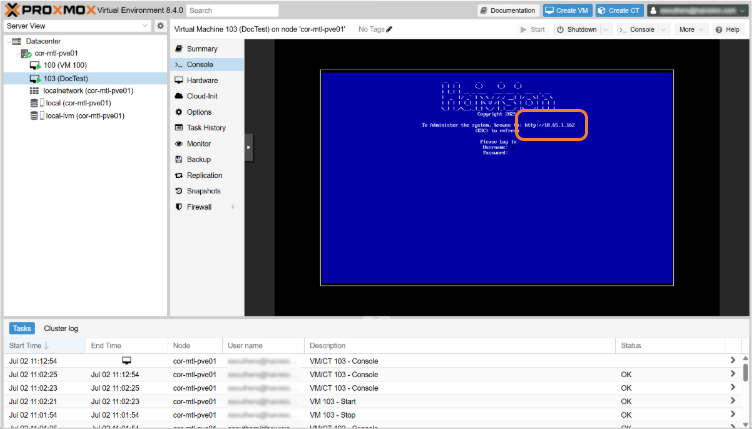 Proxmox Console