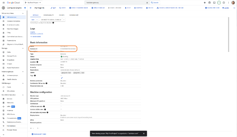 After deployment completes, click the Compute Engine's Resource name to access the details.