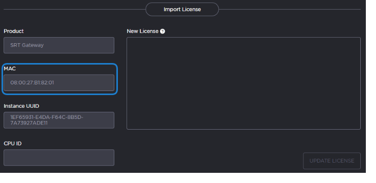 On the Licensing page that appears after clicking the Add License button, copy the server's MAC Address.