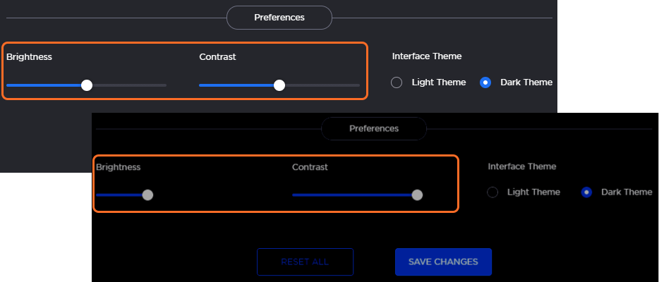 Click the Save Changes button to save the settings, or click the Reset All button to restore the default brightness and contrast.
