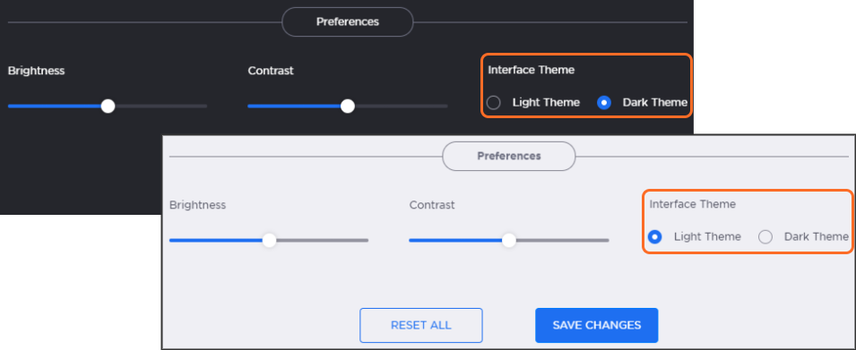 Customize the brightness and contrast of the web interface.