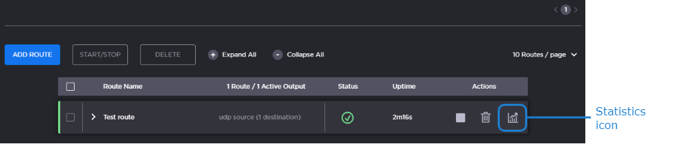 A route's statistics gives you access to real-time data regarding the route's source and destinations. To view statistics for a route: