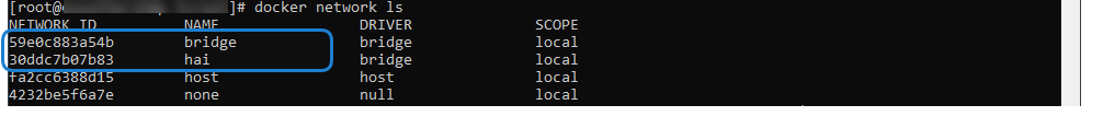 Run the following command to determine the network IDs of the docker bridge and hai processes: