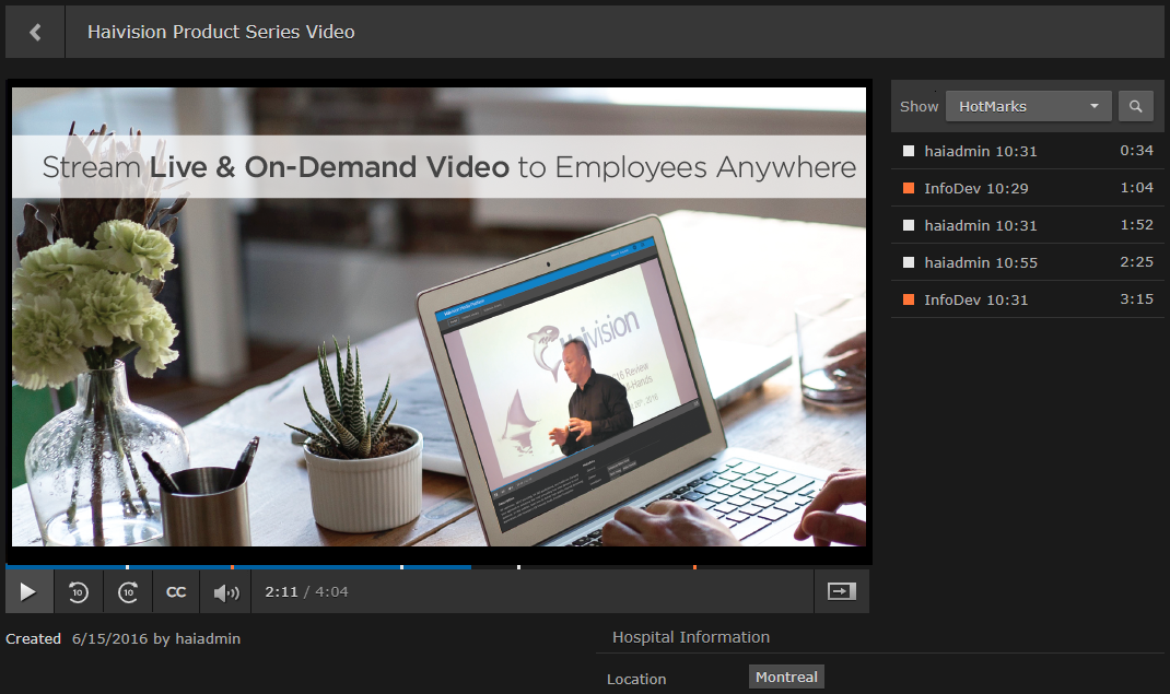 Clicking a thumbnail or title of a video, session, or source launches it in the default player.