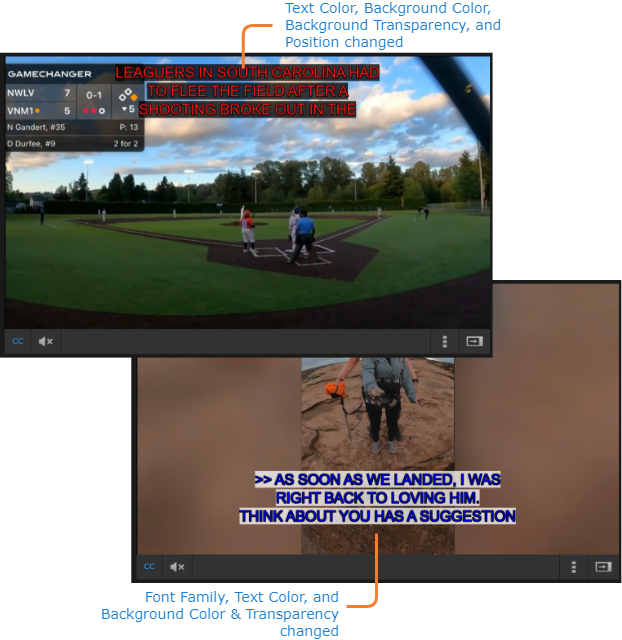 On the Player tab, you can customize the closed captioning font family, font color, font size, background color, and positioning.