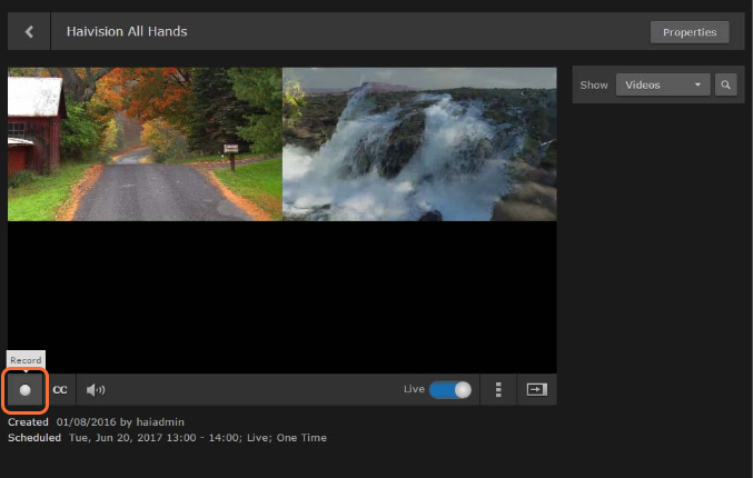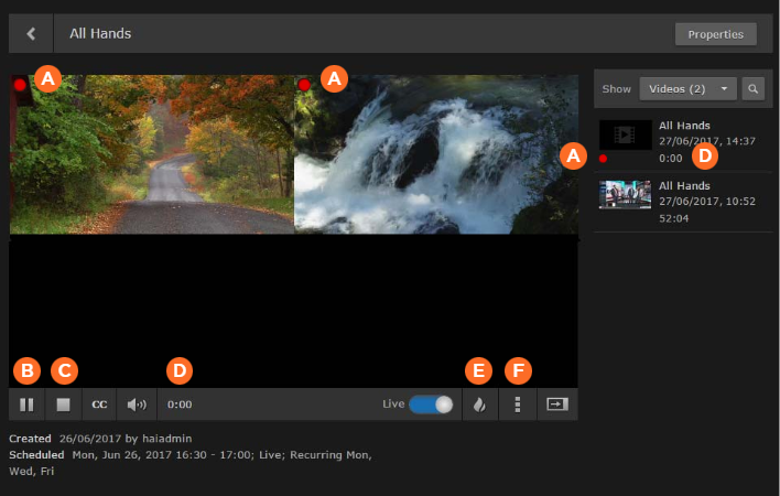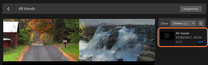 The new video is added to the list of Videos beside the viewer (as shown in the following example), as well as to the Library's Videos list.
