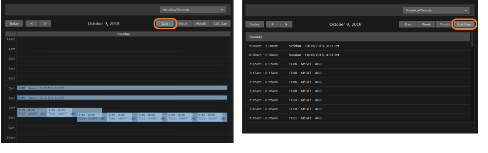 • You can switch the view by clicking the DayWeekMonth, or List Day tabs along the top of the calendar.