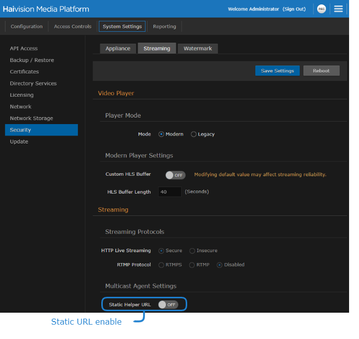 Configuring a Static URL for Haivision Helper