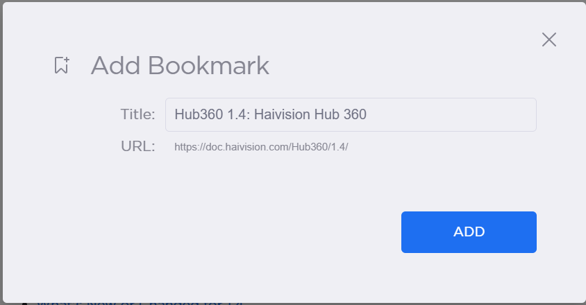 1. A dialog appears allowing you to customize the default bookmark title. Also, the current URL appears. Click the Add button.
