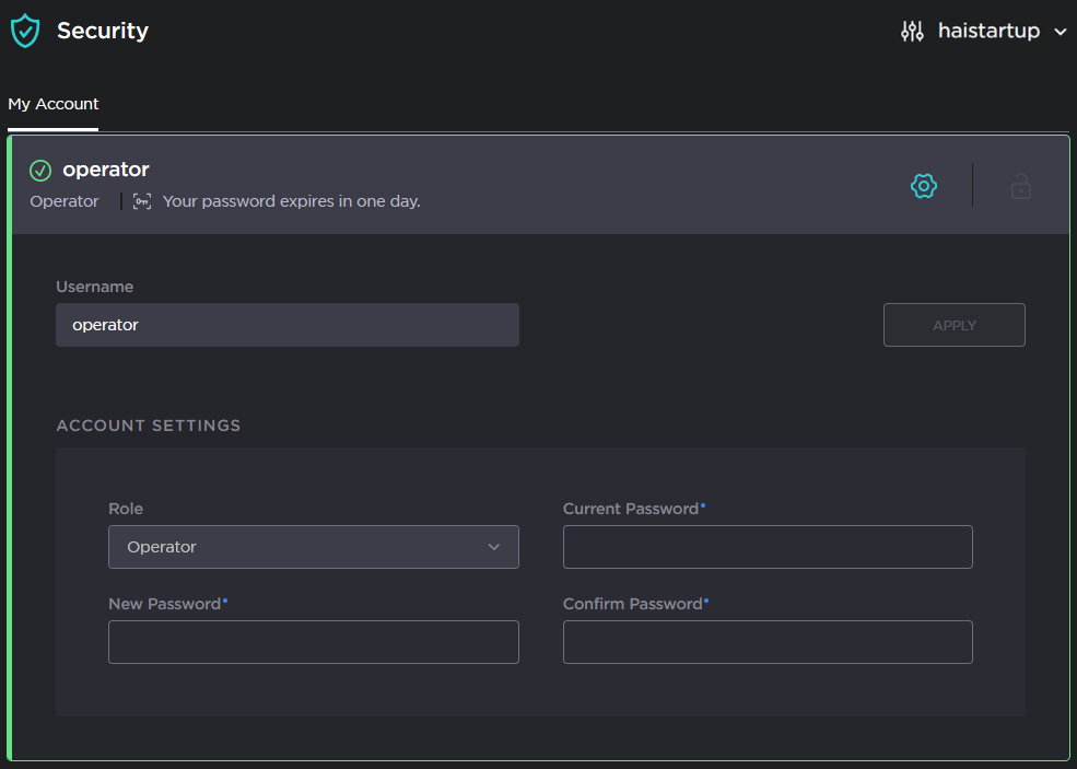 Users assigned either Operator or Viewer roles can change their passwords from the Accounts page, as described in this section. This is useful when logging into a Kraken on which the factory defaults have not been changed.