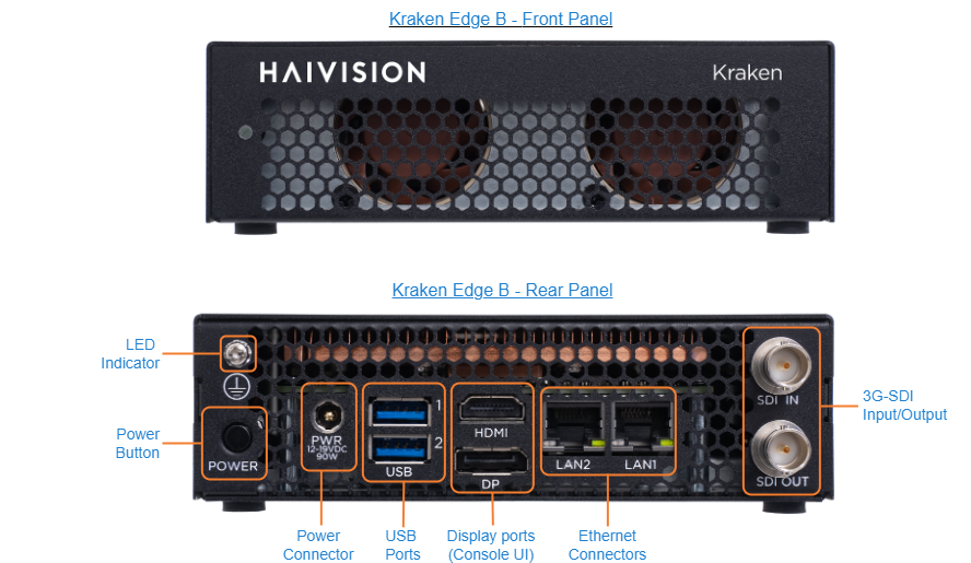 Connect an RJ45 Ethernet cable (CAT5) cable to the LAN1 or LAN2 connector on the Kraken Edge rear panel.