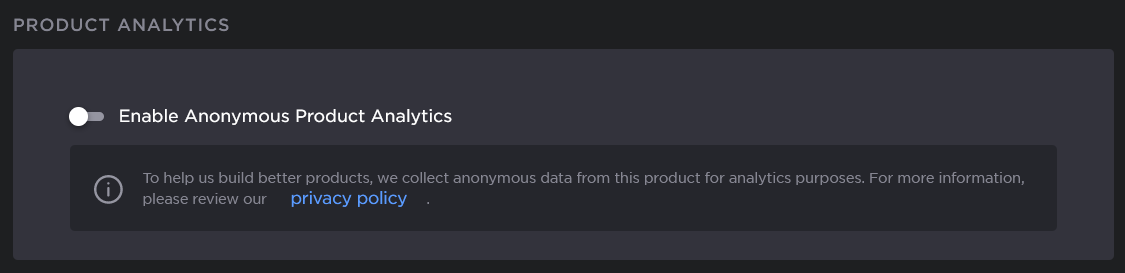 Enable or disable the tracking of anonymous product analytics.