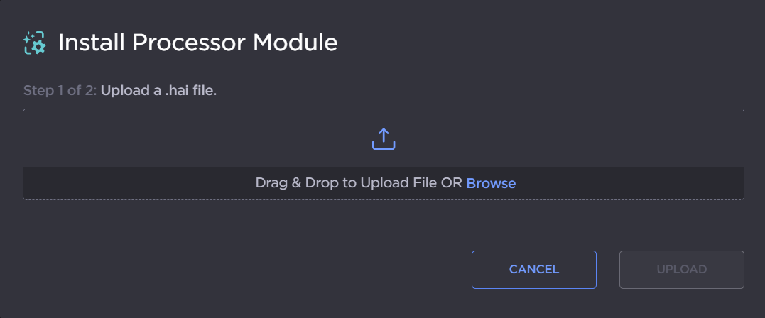 In the Install Processor Module dialog, drag and drop or click Browse to select the processor file.