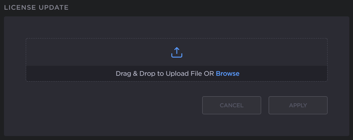 After you receive a license key, scroll down to the License Update section and upload the license.