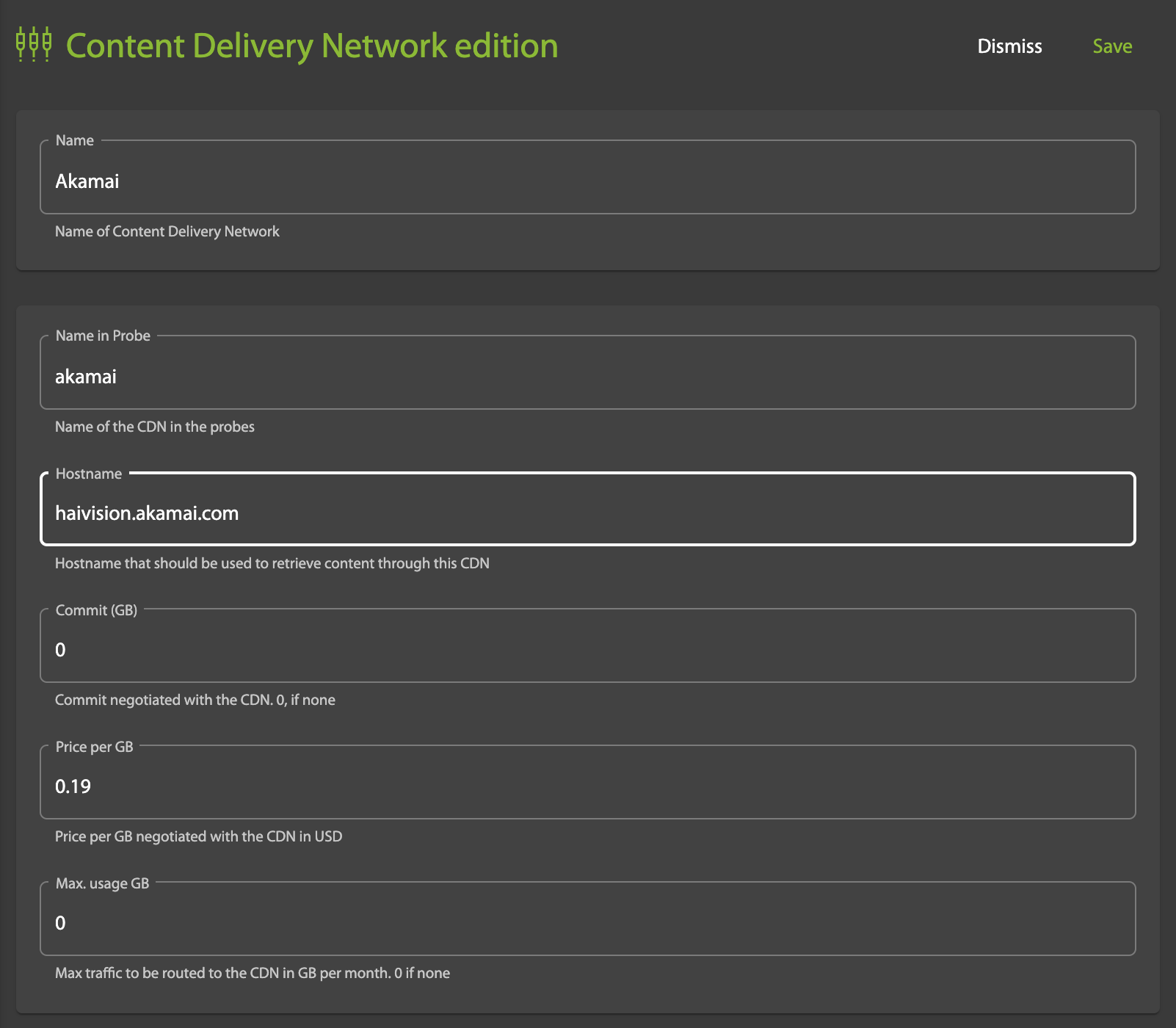 - Price per GB: The price per GB negotiated with the CDN (in US dollars)