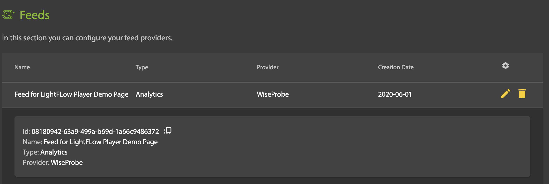 - Click on the associated pencil icon to edit a feed in the list. Click the trash can icon to delete it.