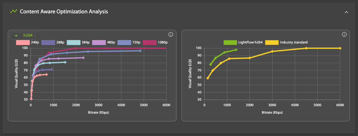 This section provides an analysis comparing the quality that would result from using the reference ladder compared to the quality that you get with the renditions that LightFlow proposes.