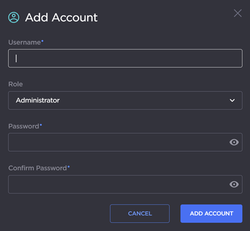 2. In the Add Account panel, type a unique user name in the Username text box.