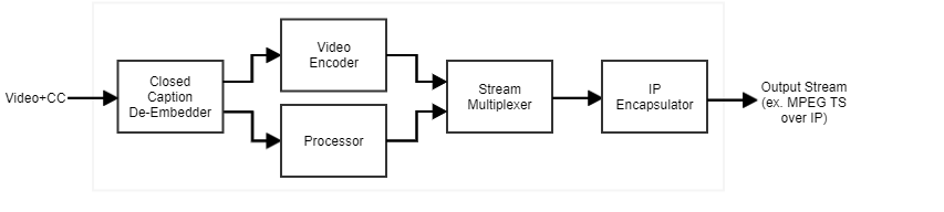The following block diagram shows the workflow for video and CC data into the encoder.