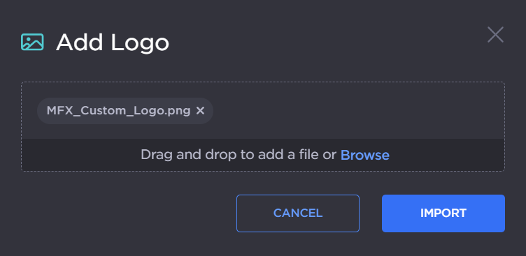 From the Add Logo panel, drag and drop or browse your files to select your logo, then click Import.