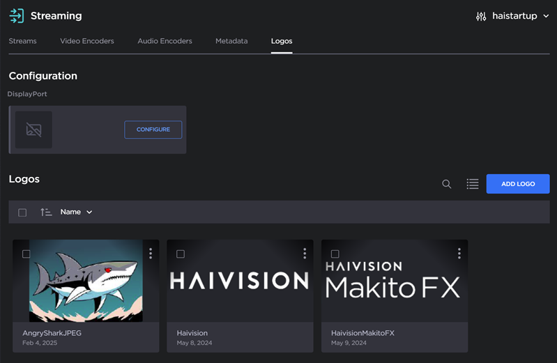Two Haivision logos are available by default. To upload a custom logo, click Add Logo.