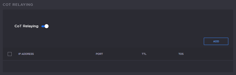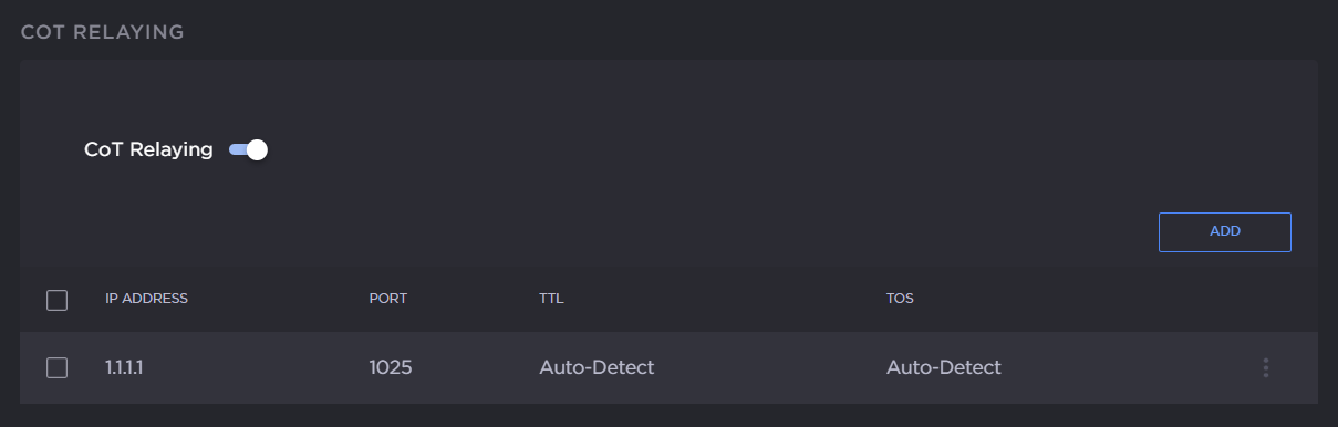 on the CoT metadata source to be retransmitted. For details on setting up the metadata source, see Setting Up Streams.On the Metadata Detail View, if necessary, scroll down the page and toggle the CoT Relaying button on.