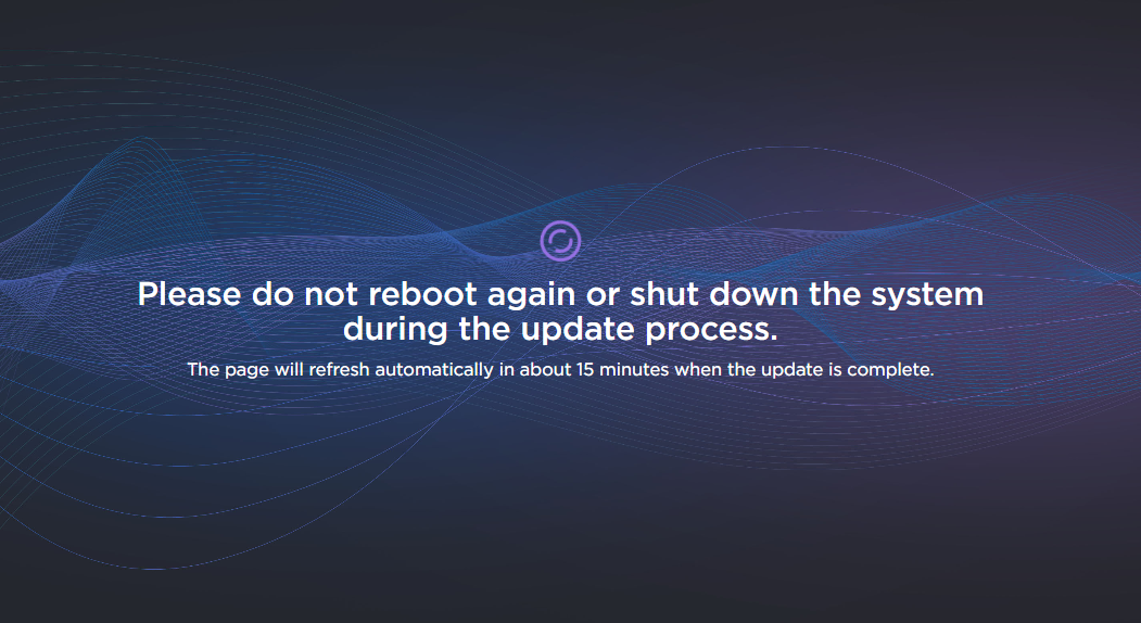 While the unit is rebooting, the Status LED will flash, and you will see a warning page (as shown below).