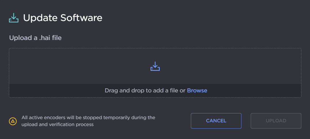 The firmware upgrade comes in the form of a file with the extension .hai, which when loaded will replace the application on your Makito X Series appliance. The firmware upgrade components are digitally signed, and these signatures are all verified before performing the installation.