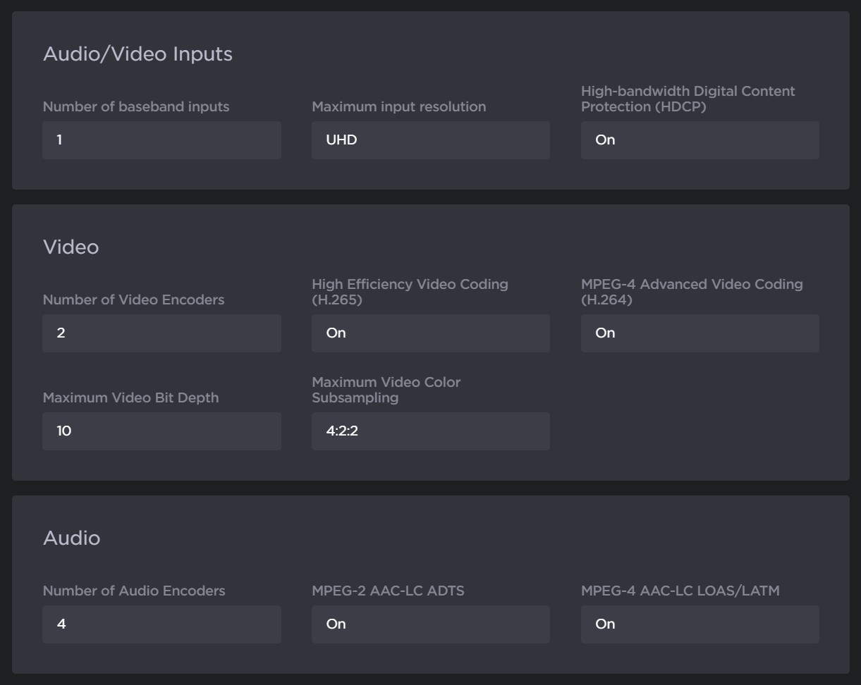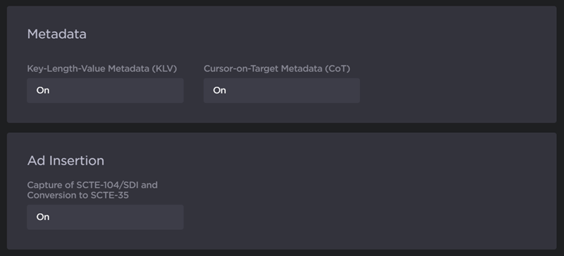 Metadata and Ad Insertion features.