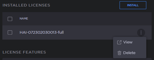 You may install and manage licenses from the Web interface or from the CLI using the license command. Both methods allow you to view the content and status (valid/invalid) of the license file to confirm the ordered features.
