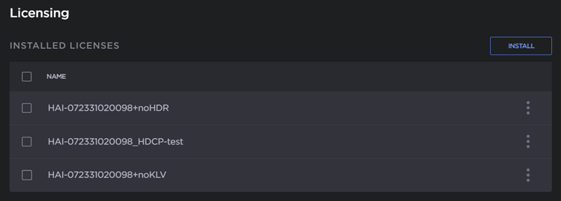 The encoder will reboot and you will be returned to the Sign-in page.To view an installed license file, click the vertical ellipsis menu in the listed license, and click View.