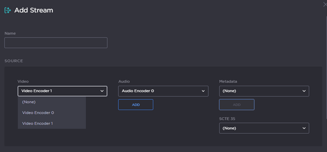 1. For the Video Source, select a different Video Encoder. For example, if you selected Video Encoder 0 for the first stream, now select Video Encoder 1 (as shown in the following example).