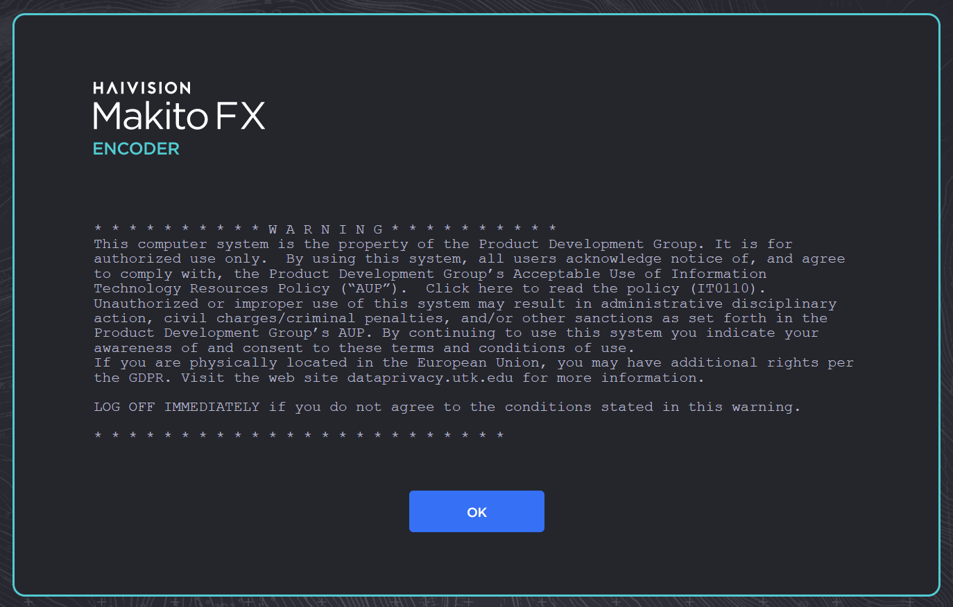 Please refer to the Important Notice (postcard shipped with the appliance or available from the Download Center on the Haivision Support Portal) for the default sign-in credentials.