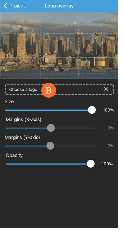 Tap a section of the grid to move your logo there. Depending on the section selected, the Margins sliders become editable. Drag the sliders to adjust the logo's position along the X and Y axes.