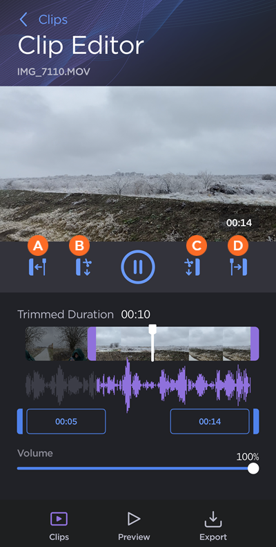 3. Tap a clip thumbnail to open the Clip Editor: