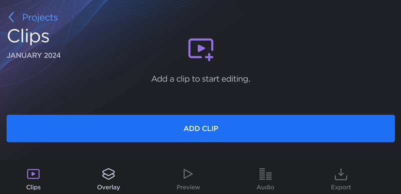 Tap Reorder to change the order of clips in your project. See Reordering Clips for more information.