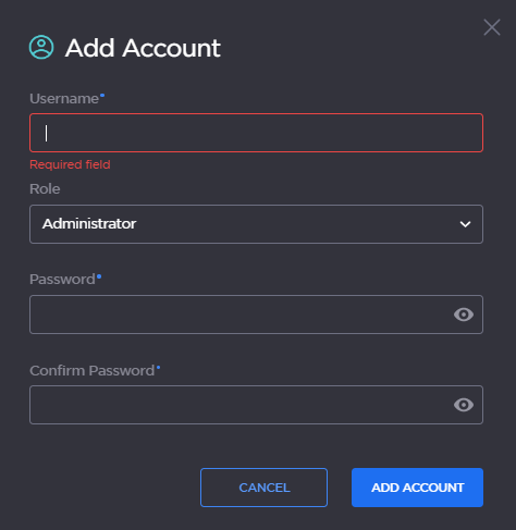 In the Add Account panel, type a unique user name in the Username text box.