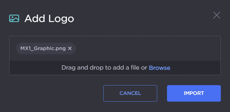 From the Add Logo panel, drag and drop or browse your files to select your logo, then click Import.