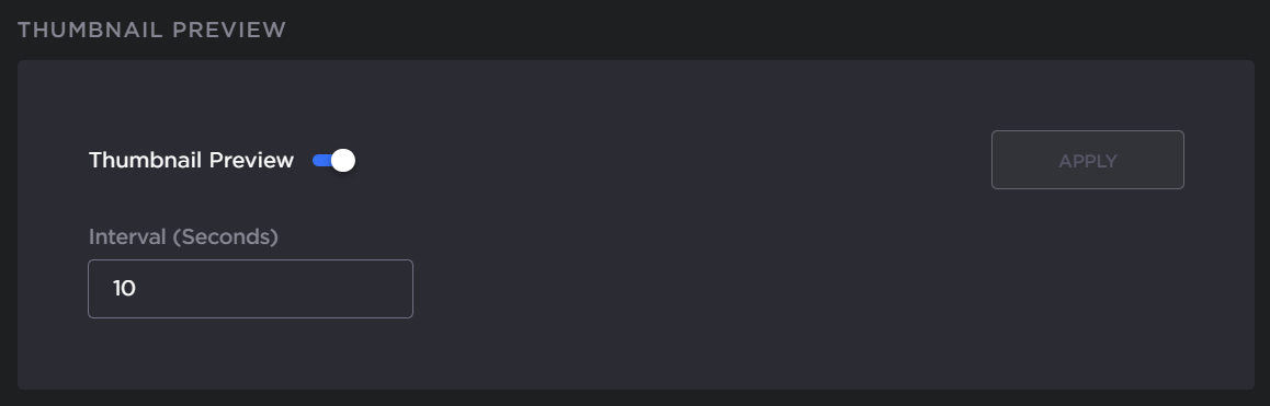 Preview Thumbnails appear on the Dashboard, Streams and Video Encoders pages to provide a visual reference of each video encoder's input. Preview Thumbnails can be enabled/disabled, and preview settings persist through reboot. By default, previews are enabled and set to 10 second intervals.