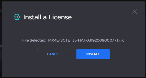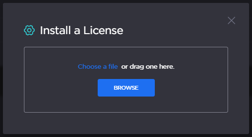To install a license, click the Install button at the top of the Licensing page. Then, click Browse to select the license file, or drag and drop the file in the Open File dialog box.